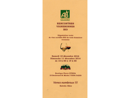 accueil > actualités > Rencontres vigneronnes à la boutique de Paris St Michel - les 10 et 11 décembre 2016