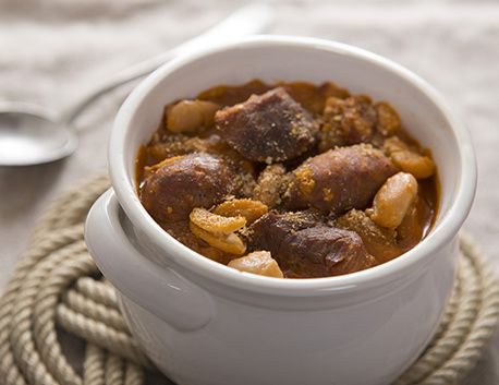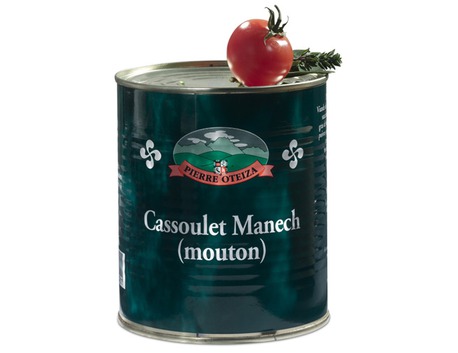 Le cassoulet Manech (mouton du Pays Basque)est un cassoulet de mouton riche en viande accompagné de haricots lingots, de ventrèche et de saucisses confites.