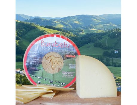 Cette tomme de fromage de brebis AOP Ossau Iraty est élaborée par la Famille Monaco à Urepel, à la ferme Burubeltx, selon un savoir-faire traditionnel. Elle est affinée à la ferme 4 mois minimum. Le Fromage de brebis fermier Burubeltx au lait cru vous étonnera par sa douceur et son moëlleux.