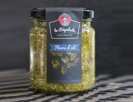 Après avoir planté les gousses d’ail en octobre, il récolte les fleurs fin mai et les transforme lui-même dans son laboratoire. Les fleurs d’ail (la tête et la fine tige finale) sont hachées et vont macérer un long moment dans un bain d’huile de tournesol, citron et sel. Le résultat est très parfumé et doux