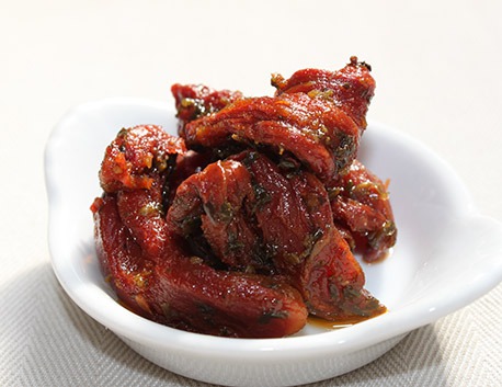 Les pétales de tomate séchées accompagnent jambons, viandes froides, pointes d'asperge.