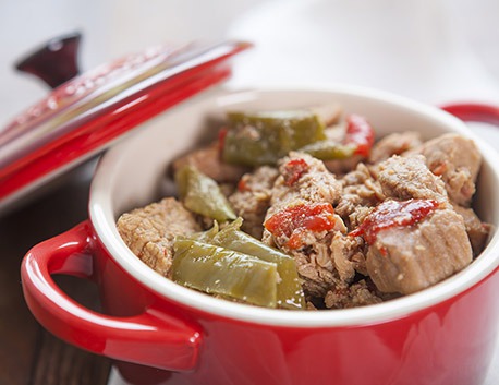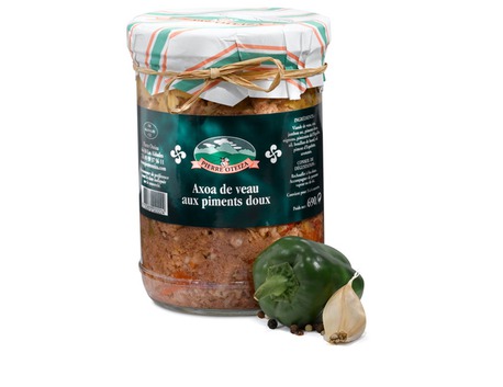 L'Axoa est une recette d'émincé d'épaule de veau mijoté avec du piment doux, de l'oignon, des pimientos del piquillo et du piment d'Espelette.