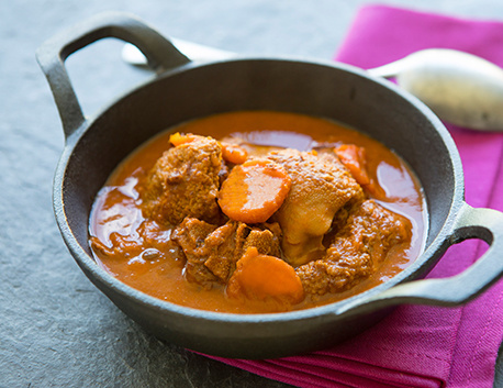 Panses de bœuf (59%), carottes (9%), vin blanc, tomate, eau, oignons, jambon sec (jambon de porc, sel, dextrose, saccharose, conservateur : nitrate de potassium, poivre, ail, piment), poireaux, pieds de veau, sel, sirop de glucose, épices, extrait de levure, arômes, piment d’Espelette AOP (0.06%), poivre.