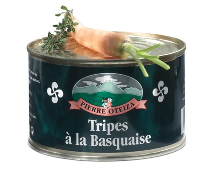 La recette de tripes à la basquaise est élaborée à partir de panse de boeuf et de pied de veau cuisinés avec du jambon, du vin blanc, du coulis de tomate, des carottes et une pointe de piment d'Espelette.