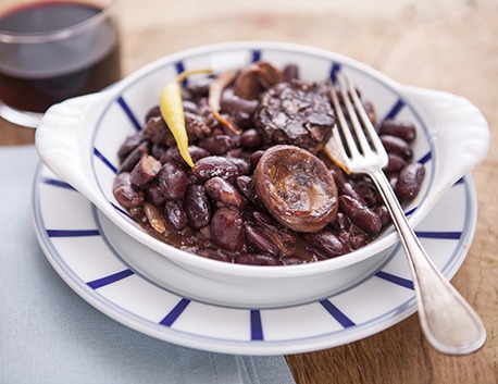 Selon une ancienne recette navarraise, les haricots rouges sont cuisinés à l'ail et mijotés avec du chorizo et du boudin basque. Servis en accompagnement d'une viande blanche pour composer votre plat principal, il peuvent aussi être présentés en soupe ou en entrée comme en Navarre.