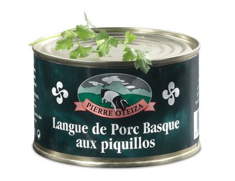 Recette de langue de porc basque aux piquillos : Langue de Porc Basque (59%), crème fraîche (LACTOSE), oignons, pimientos del Piquillo (5,6%) (acidifiant : acide citrique et épaississant : chlorure de calcium), sel.