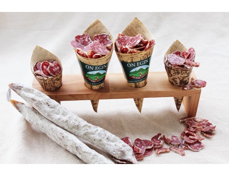 La saucisse sèche se déguste tranchée finement et servie en apéritif dans un cornet "on egin" , elle fait le bonheur des petits et des grands !