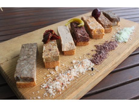 Accompagnez les pâtés selon vos envies pour une entrée savoureuse : avec des cerises au vinaigre et des guindillas !